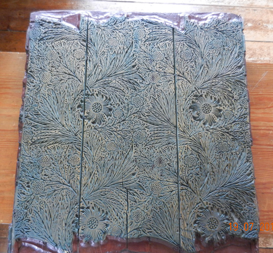 Wallpaper printing block on display in the studio